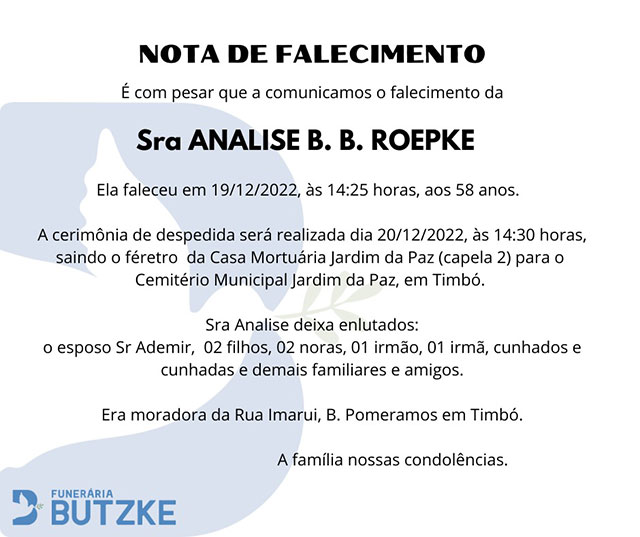 Notas de Falecimento – 19/12/2022 Dezembro 19, 2022 0 Por Redação Whatsapp Share Post Share Pinterest A FAMÍLIA NOSSO SENTIMENTO E CONFORTO——————— OUTRAS NOTAS ACESSE https://bit.ly/2YDELw3 Matérias Relacionadas:No related posts. Câmara Municipal de Timbó é classificada como nível de transparência “Ouro” com relação a transparência das informações Museu do Imigrante de Timbó recebe exposição itinerante com obras de artistas do Vale Europeu