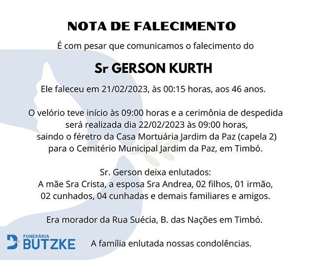 Notas de Falecimento – 21/02/2023 Fevereiro 21, 2023 0 Por Redação Whatsapp Share Post Share Pinterest A FAMÍLIA NOSSO SENTIMENTO E CONFORTO——————— OUTRAS NOTAS ACESSE https://bit.ly/2YDELw3 Matérias Relacionadas:No related posts. Setor aquecido impulsiona inovação e exclusividade na construção civil Brasil – Dia Nacional do Imigrante Italiano é comemorado em 21 de fevereiro