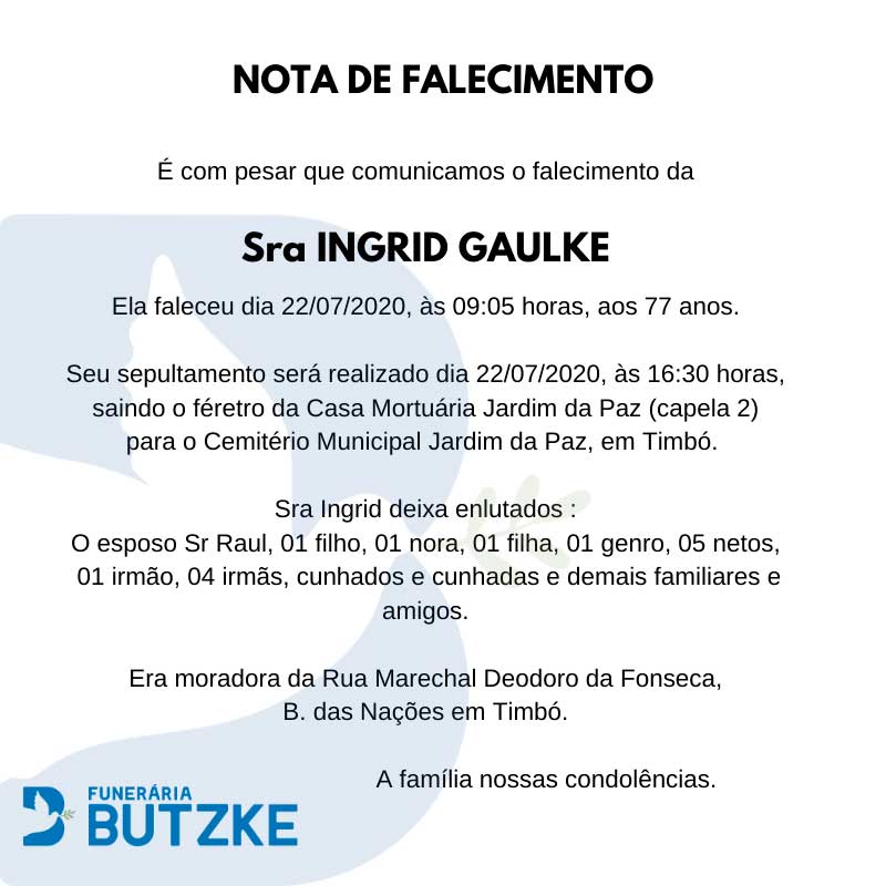 Notas de Falecimento – 22/07/2020 Julho 22, 2020 0 Por Redação Whatsapp Share Post Share Pinterest Matérias Relacionadas:No related posts. NOTA A COMUNIDADE – Hospital e Maternidade Oase 22/07/2020 Coronavírus em SC: Em visita ao estado, ministro da Saúde elogia política catarinense de enfrentamento à pandemia