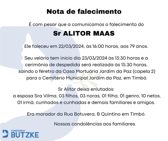 Notas de Falecimento – 23/03/2024 Março 23, 2024 0 Por Redação Whatsapp Share Post Share Pinterest A FAMÍLIA NOSSO SENTIMENTO E CONFORTO——————— OUTRAS NOTAS ACESSE https://bit.ly/2YDELw3 Matérias Relacionadas:No related posts. Eleições 2024 – PL de Indaial nega intervenção e afirma ter apoio da Estadual Grupos Mães de Autistas de Indaial realiza evento no sábado dia 6 de abril no Centro da Cidade