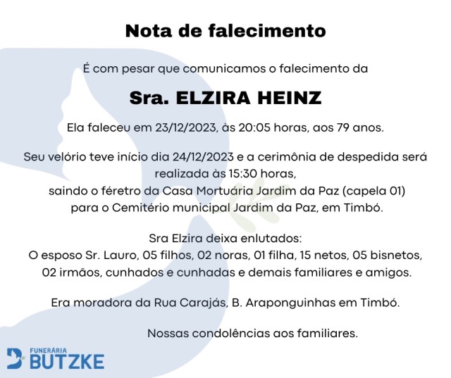 Notas de Falecimento – 24/12/2023 Dezembro 24, 2023 0 Por Redação Whatsapp Share Post Share Pinterest A FAMÍLIA NOSSO SENTIMENTO E CONFORTO——————— OUTRAS NOTAS ACESSE https://bit.ly/2YDELw3 Matérias Relacionadas:No related posts. Notas de Falecimento – 23/12/2023 Notas de Falecimento – 25/12/2023