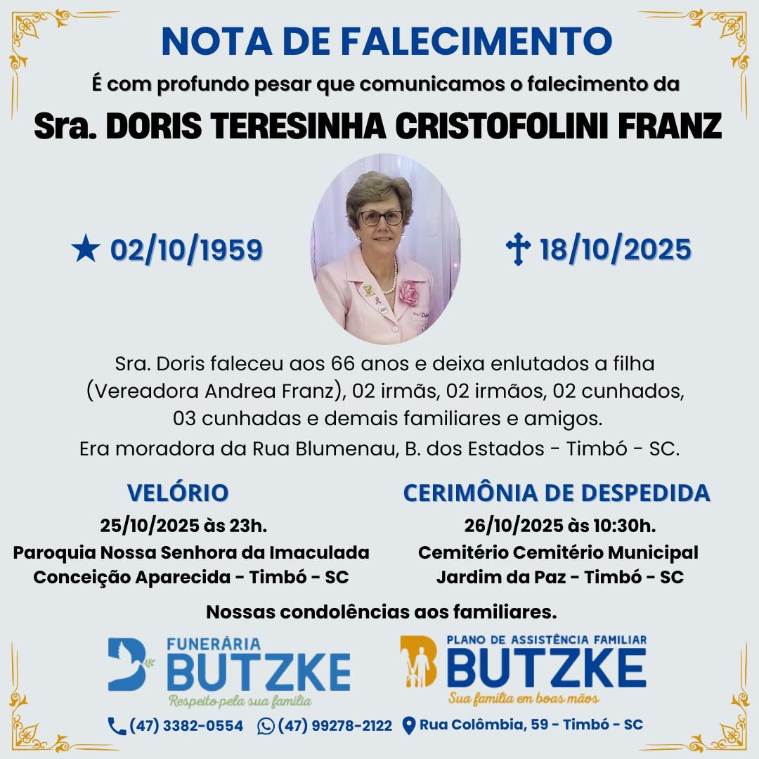Notas de Falecimento – 25/10/2025 Outubro 25, 2025 0 Por Redação Whatsapp Share Post Share Pinterest A FAMÍLIA NOSSO SENTIMENTO E CONFORTO ——————— OUTRAS NOTAS ACESSE https://mla.bs/4a87181d Matérias Relacionadas: Notas de Falecimento – 09/06/2025 Notas de Falecimento – 13/06/2025 Notas de Falecimento – 30/06/2025 Notas de Falecimento – 03/07/2025 Notas de Falecimento – 16/07/2025 Notas de Falecimento – 25/07/2025 Notas de Falecimento – 29/07/2025 Notas de Falecimento – 18/08/2025 Notas de Falecimento – 23/08/2025 Notas de Falecimento – 26/08/2025 Notas de Falecimento – 09/09/2025 Notas de Falecimento – 19/09/2025 Notas de Falecimento – 30/09/2025 TIBÉRIO VALCANAIA: ADMINISTRADOR POR FORMAÇÃO, RADIALISTA POR PAIXÃO PSD de Indaial tem nova comissão provisória municipal anunciada pela Executiva Estadual