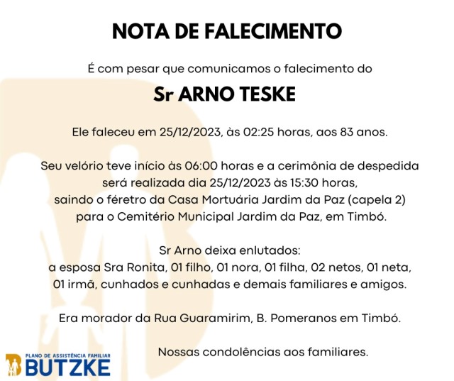 Notas de Falecimento – 25/12/2023 Dezembro 25, 2023 0 Por Redação Whatsapp Share Post Share Pinterest A FAMÍLIA NOSSO SENTIMENTO E CONFORTO——————— OUTRAS NOTAS ACESSE https://bit.ly/2YDELw3 Matérias Relacionadas:No related posts. Notas de Falecimento – 24/12/2023 Unicred Vale conquista selo de excelência em gestão