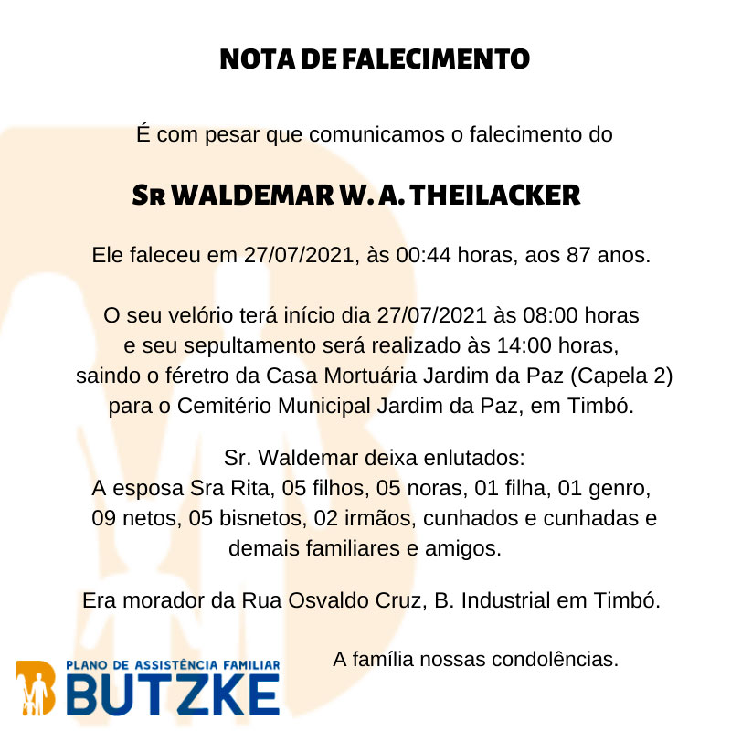 Notas de Falecimento – 27/07/2021 Julho 27, 2021 0 Por Redação Whatsapp Share Post Share Pinterest Matérias Relacionadas:No related posts. Sebrae/SC traz Bernardinho para palestra gratuita sobre motivação e liderança para os negócios Ascurra – Obras do CEI Professora Onorata Zonta Dalfovo chegam na fase final