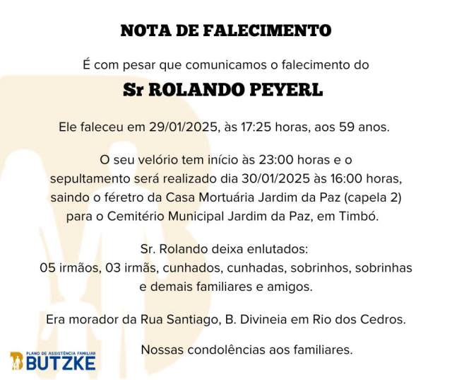 Notas de Falecimento – 29/01/2025 Janeiro 29, 2025 0 Por Redação Whatsapp Share Post Share Pinterest A FAMÍLIA NOSSO SENTIMENTO E CONFORTO——————— OUTRAS NOTAS ACESSE https://bit.ly/2YDELw3 Matérias Relacionadas:No related posts. Obra de Complexo Esportivo de Timbó paralisada: Irregularidades são o motivo Timbó – Interdição da Rua Professor Alfredo Girardi para obras