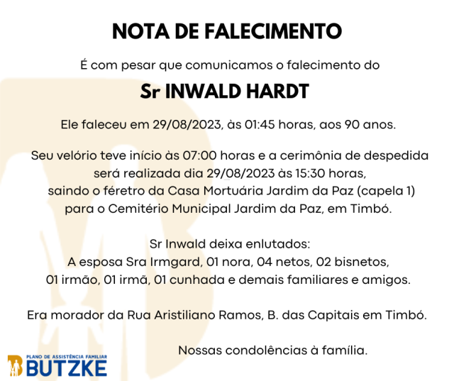 Notas de Falecimento – 29/08/2023 Agosto 29, 2023 0 Por Redação Whatsapp Share Post Share Pinterest A FAMÍLIA NOSSO SENTIMENTO E CONFORTO——————— OUTRAS NOTAS ACESSE https://bit.ly/2YDELw3 Matérias Relacionadas:No related posts. Rede Cooper é eleita a marca mais lembrada de Santa Catarina pelo terceiro ano consecutivo Faltam 30 dias para a 31ª Festa do Imigrante – confira a programação