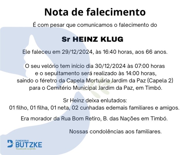 Notas de Falecimento – 29/12/2024 Dezembro 29, 2024 0 Por Redação Whatsapp Share Post Share Pinterest A FAMÍLIA NOSSO SENTIMENTO E CONFORTO——————— OUTRAS NOTAS ACESSE https://bit.ly/2YDELw3 Matérias Relacionadas:No related posts. Timbó – Vereador do PSDB confirma adesão à base de Flávio Buzzi Itália eleva taxas para obtenção de cidadania e gera polêmica