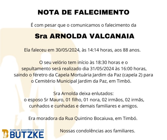 Notas de Falecimento – 30/05/2024 Maio 30, 2024 0 Por Redação Whatsapp Share Post Share Pinterest A FAMÍLIA NOSSO SENTIMENTO E CONFORTO——————— OUTRAS NOTAS ACESSE https://bit.ly/2YDELw3 Matérias Relacionadas:No related posts. Chopp do Bem: Evento em Timbó vai arrecadar recursos para o Rio Grande do Sul Coluna Escoteira – por Rogerio Gessner 31/05/2024