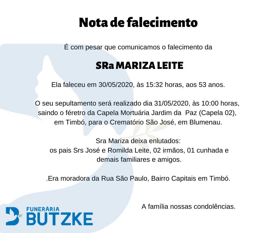 É com pesar que a FUNERÁRIA BUTZKE comunica o falecimento da Sra. DEORIDES DIVINA ROVADOSCHI