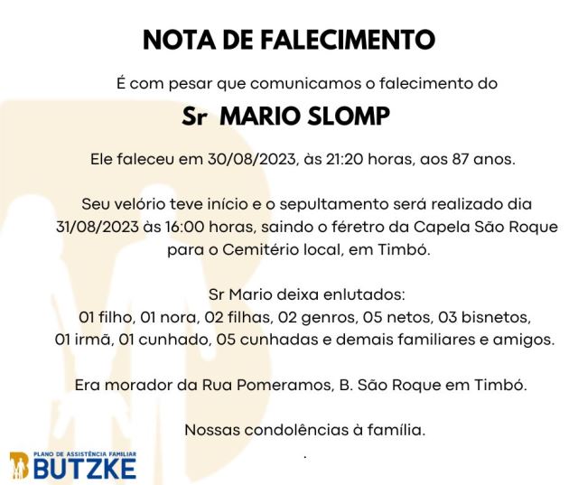 Notas de Falecimento – 31/08/2023 Agosto 31, 2023 0 Por Redação Whatsapp Share Post Share Pinterest NOTA DE FALECIMENTO – 1A FAMÍLIA NOSSO SENTIMENTO E CONFORTO——————— OUTRAS NOTAS ACESSE https://bit.ly/2YDELw3 Matérias Relacionadas:No related posts. Campanha do Agasalho “Você é a peça que faltava” supera um milhão de peças arrecadadas Timbó – Moradores da localidade de Mulde Alta vão receber nova lixeira pública