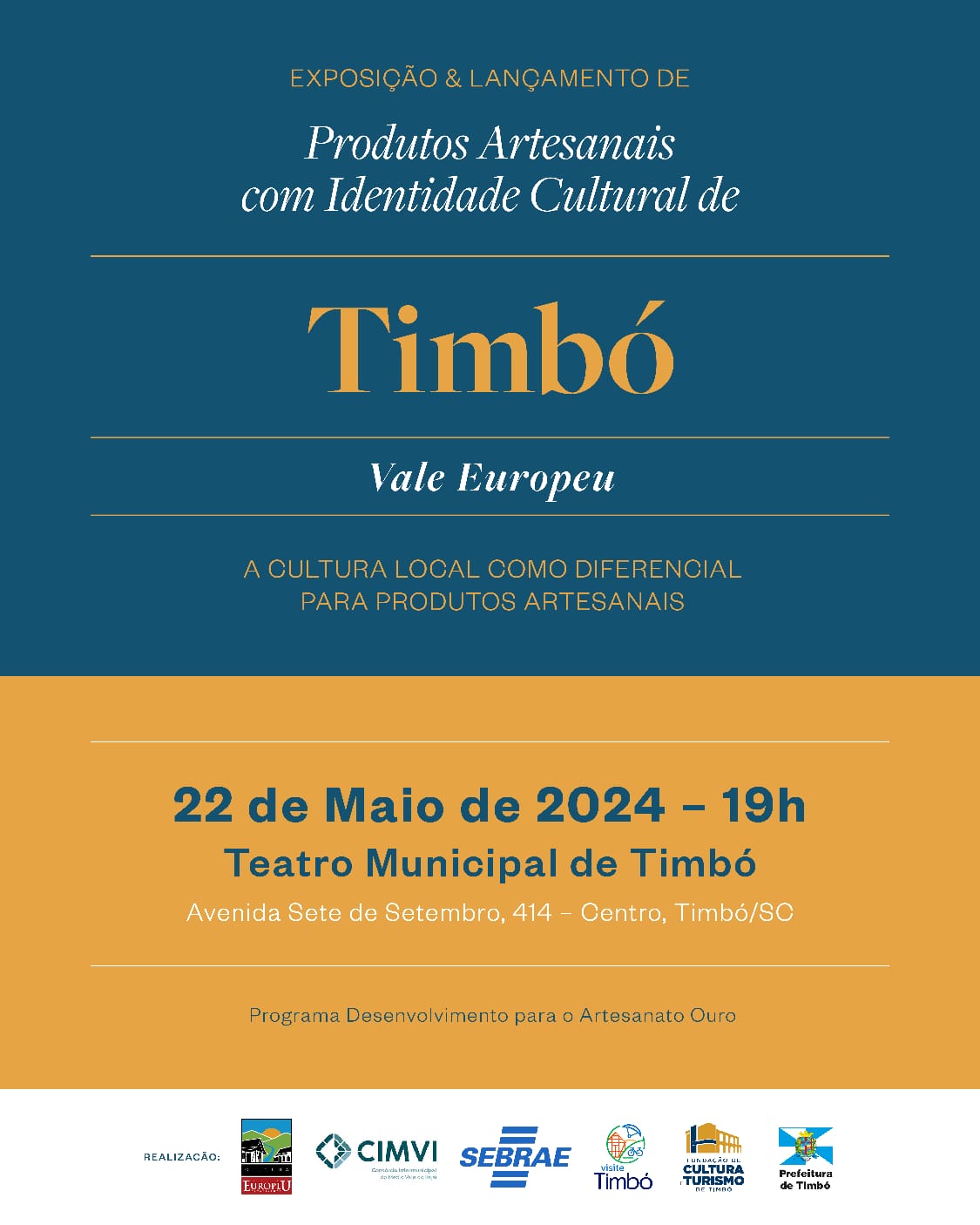 Na noite da próxima quarta-feira, dia 22 de maio, acontece o lançamento de uma nova coleção de produtos artesanais e criativos com a identidade cultural de Timbó. O evento inicia às 19h, no Teatro Municipal de Timbó.