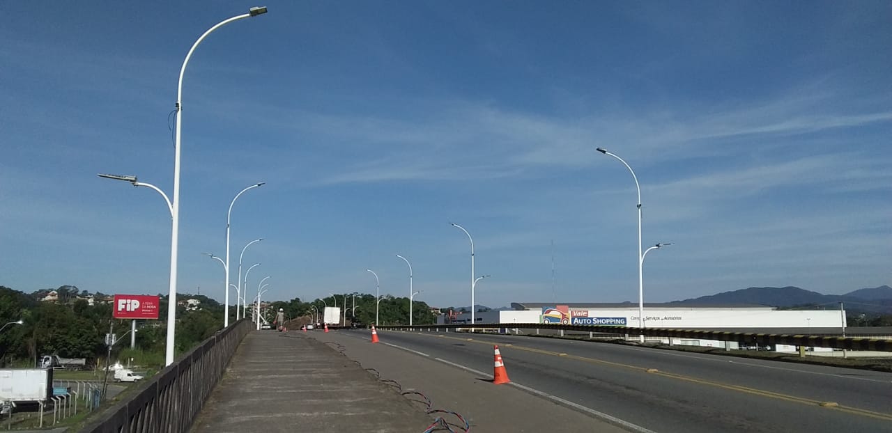 Junho 22, 2020Estão em andamento os trabalhos de instalação da nova iluminação pública no viaduto da Mafisa, que fica na região onde a SC-108 passa sobre a BR-470, em Blumenau (SC). Trata-se de uma demanda antiga da comunidade que agora é abraçada pela municipalidade. Uma equipe do Consórcio SQE LUZ, formado pelas empresas QUANTUM Engenharia e ENGIE, está instalando 34 novos postes no local. Cada um terá duas luminárias do tipo LED. Serão 34 luminárias de 120W e outras 34 de 230W. “O trabalho está 70% concluído”, informa o gerente do SQE Luz em Blumenau e Indaial, Janir Marcelino.