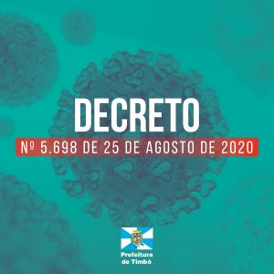 Foi assinado nesta terça-feira, dia 25 de agosto de 2020, o Decreto Nº 5.698, que altera o Decreto Nº 5.659 e prorroga o prazo das medidas de prevenção e combate ao Coronavírus (Covid-19) no município de Timbó.