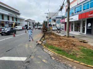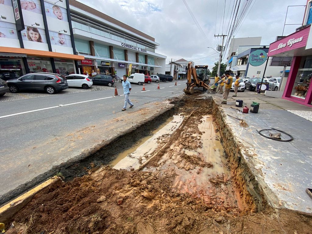 Obras para terceira pista exigem atenção dos motoristas no Centro de Timbó