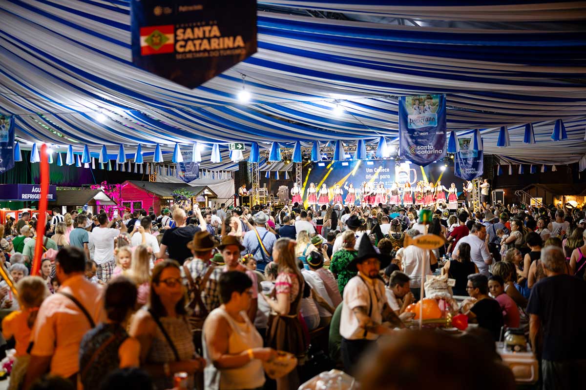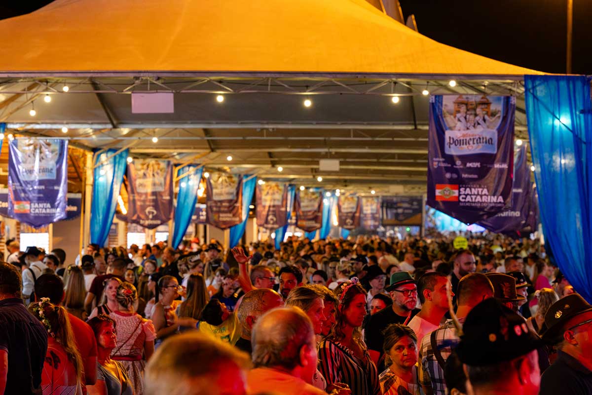 Um público de 77,3 mil pessoas participou da 40ª Festa Pomerana, em Pomerode, encerrada no domingo (26) já em clima de saudade. O Pavilhão Municipal de Eventos ficou lotado de pomerodenses e visitantes ao longo de todo dia e até a noite, quando foi eleita a realeza da próxima edição. A próxima edição do evento será de 14 a 25 de janeiro de 2026.