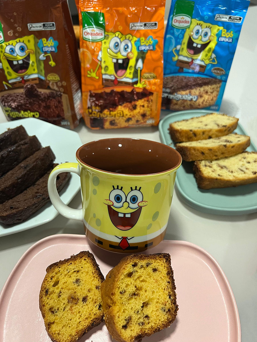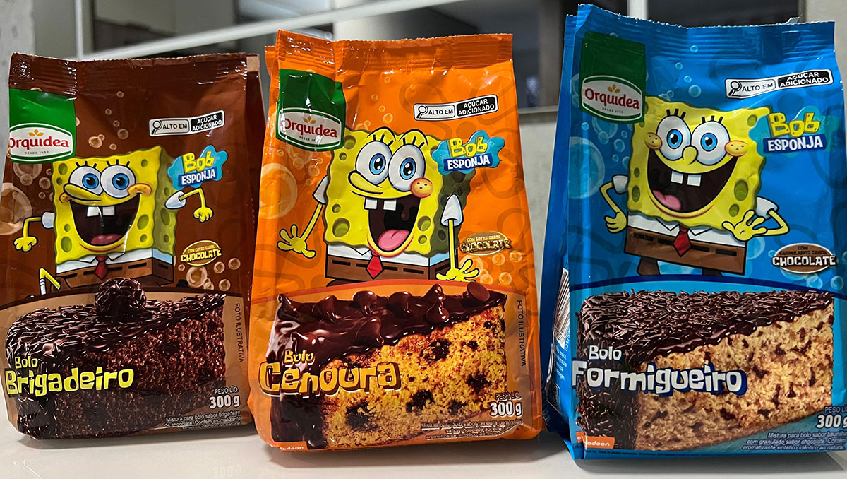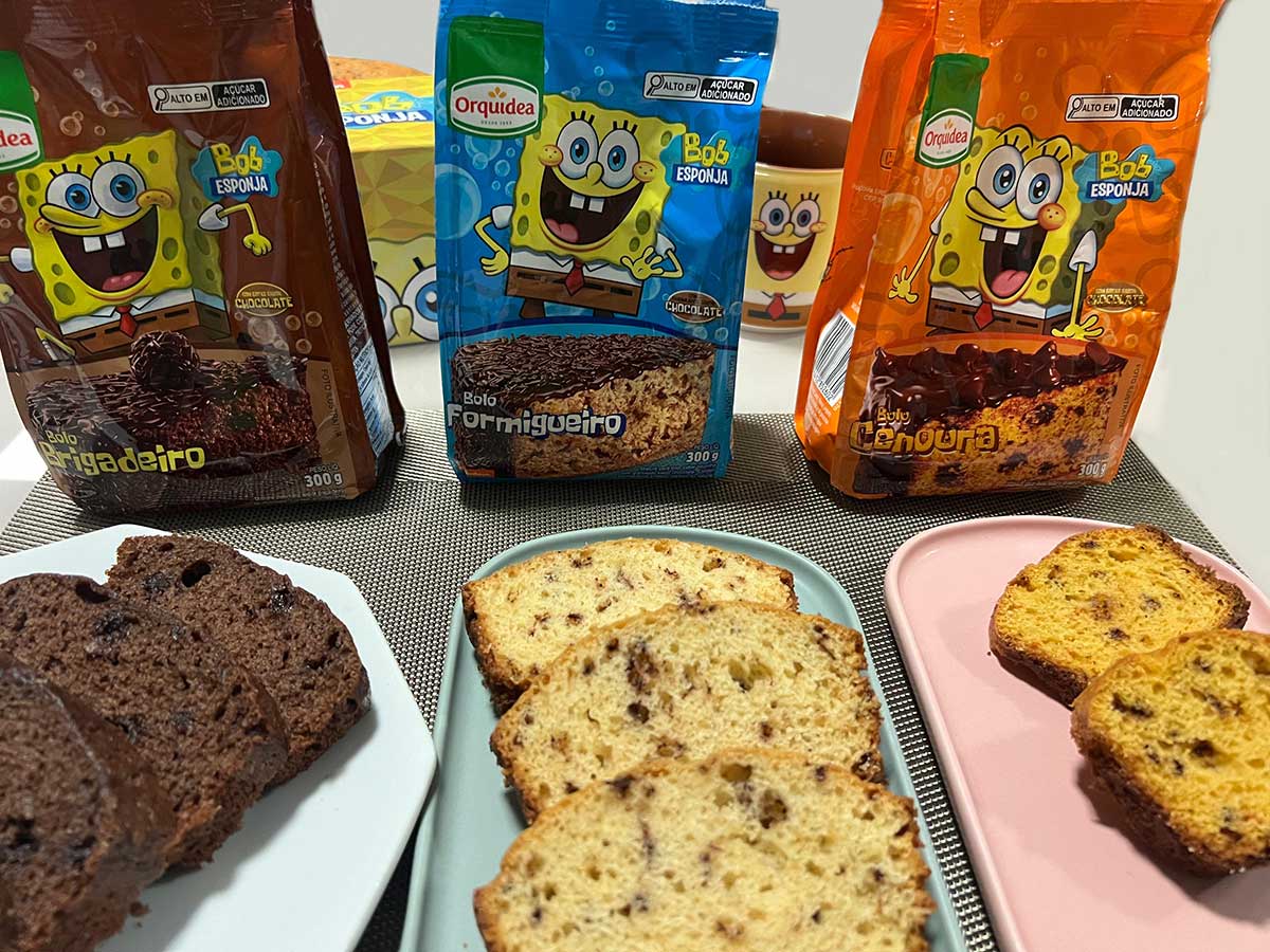 Após o sucesso da linha wafer Bob Esponja, a Orquídea Alimentos traz mais uma novidade para os consumidores: os novos sabores de mistura para bolos — Brigadeiro, Cenoura com gotas de chocolate e Formigueiro —, que também terão a esponja-do-mar e seus amigos estampados nas embalagens. Além disso, os produtos também contarão com nove figurinhas colecionáveis dos personagens, assim como já acontece nas embalagens de biscoitos, sendo três diferentes por cada sabor.