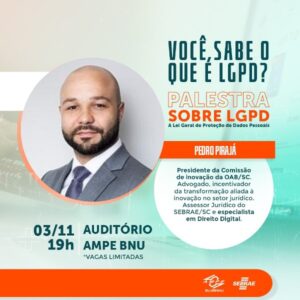 Sob o comando de Pedro Pirajá, advogado especialista em direito digital e assessor jurídico do Sebrae/SC, o encontro vai abordar como funcionam as diretrizes obrigatórias que armazenam e protegem os dados do consumidor e quais as consequências da quebra dessas regras.