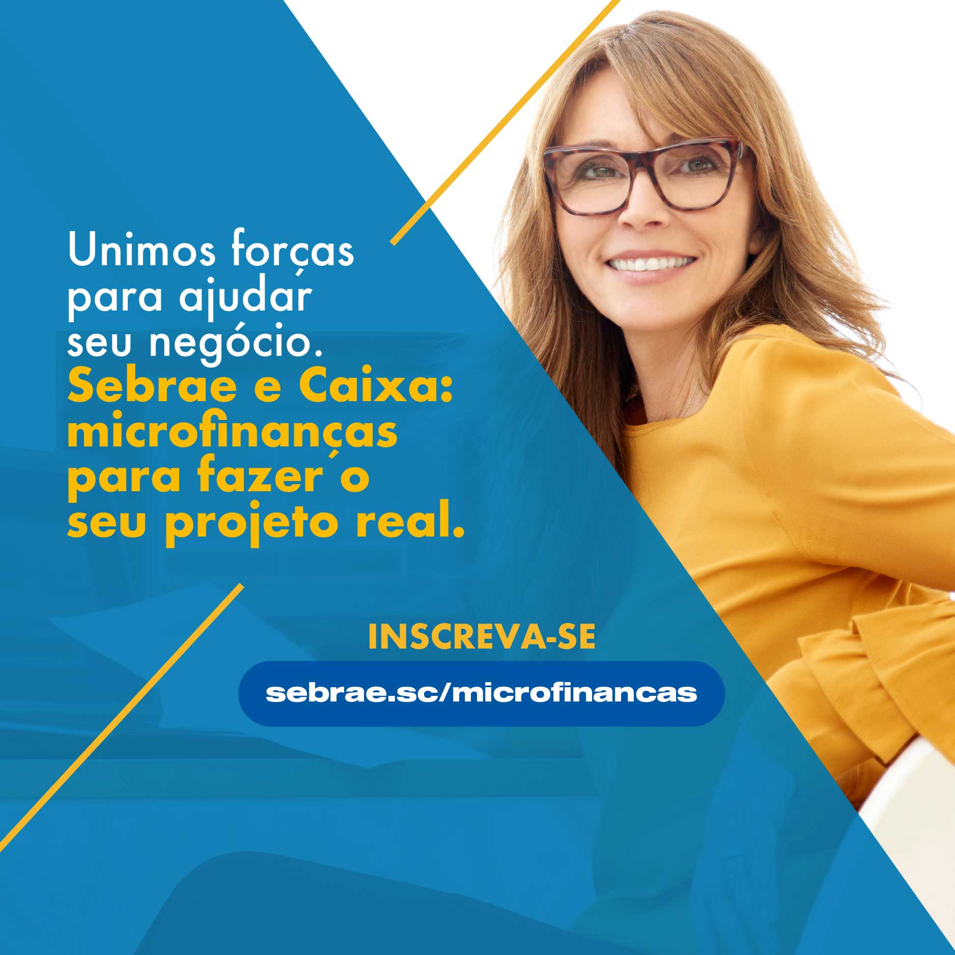 O Sebrae/SC e a CAIXA firmaram uma parceria inédita que irá disponibilizar linhas de microfinanças para microempreendedores individuais e microempresas, que têm faturamento total de até R$360 mil ao ano. O Programa Microfinanças Caixa – Sebrae, além de possibilitar o acesso ao crédito com taxas de juros diferenciadas para os empreendedores, tem como característica o oferecimento de um diagnóstico de maturidade de crédito e de uma oficina de microfinanças aos empresários. As taxas são diferenciadas, abaixo do mercado e da tarifa balcão CAIXA voltadas a microempreendedores individuais e microempresas, sujeito a avaliação de crédito.