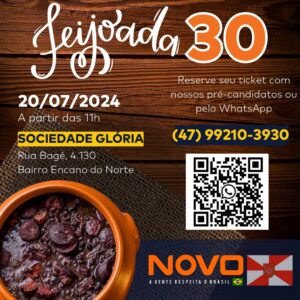 Partido NOVO Indaial convida para a Feijoada do NOVO neste sábado