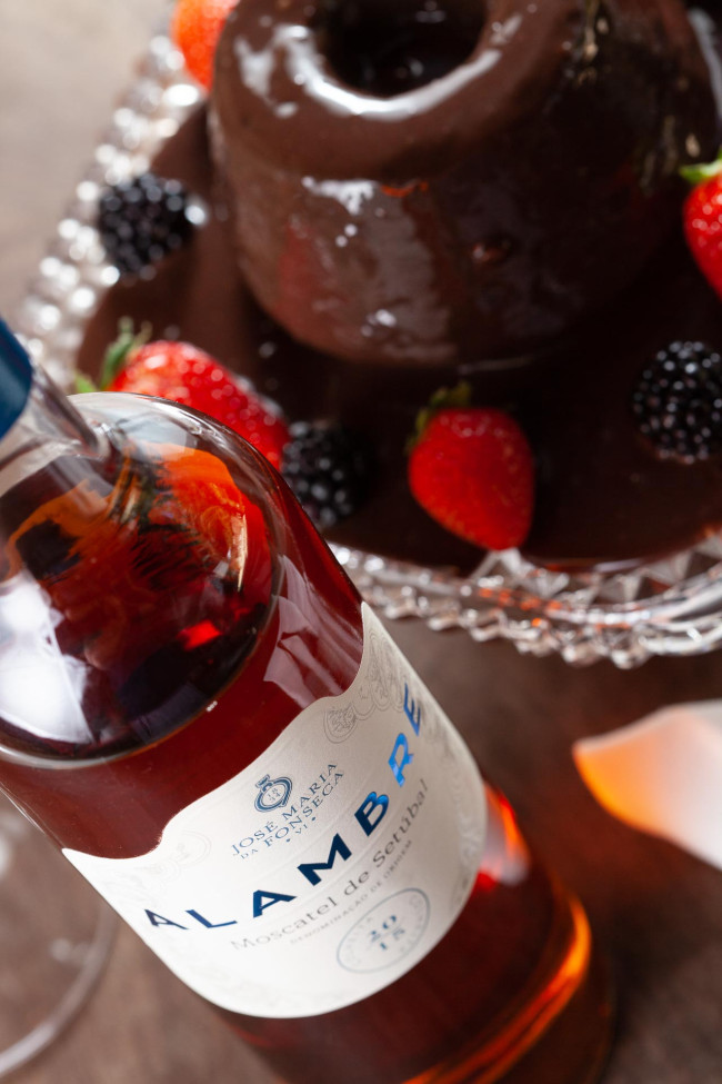 Diferente dos outros tipos de chocolate, que são produzidos a partir das amêndoas do cacau torradas, o chocolate branco utiliza a manteiga do cacau, que é extraída das sementes do fruto, o que deixa o doce com sabor mais suave e adocicado – e também permite um uso mais versátil em sobremesas. Para acompanhá-lo, um vinho do tipo branco doce sai do lugar comum e a sugestão do sommelier é o José Maria da Fonseca Moscatel de Setúbal Alambre 2017. Com aromas ricos de casca de laranja confitada, damasco seco, caramelo, e paladar untuoso, é deliciosamente equilibrado e acompanha sobremesas potentes em doçura.