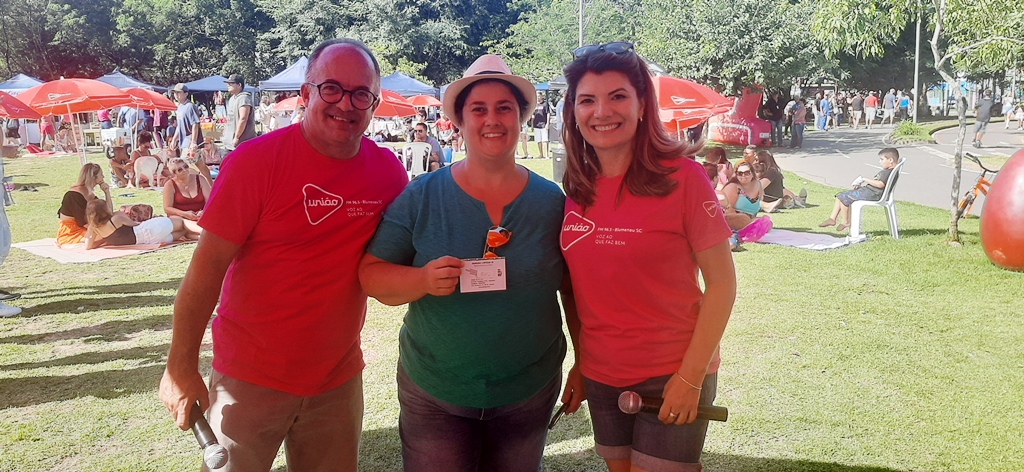 Quem optou por caminhar no parque no período da manhã se surpreendeu com a estrutura que estava sendo montada. Na grande área de gramado, ao lado do lago, equipes da emissora instalaram espaços coletivos com tapetes, almofadas, toalhas, tobogã gigante, brinquedos infantis e guarda-sóis da União FM 96.5. Ao meio-dia, duas horas antes do início da programação, as pessoas iniciaram a ocupação dos espaços preparados pela equipe de eventos da emissora. Fernando Augusto Chiuchetta, de Itajaí, foi um dos ouvintes regionais que vieram até Blumenau para aproveitar o dia no PicNic de Páscoa. “A gente ouve a União FM em Itajaí e desde o ano passado queríamos participar do PicNic da rádio. Aí, durante a semana, quando soubemos que seria neste domingo, aproveitamos para vir aproveitar com a nossa filha”, disse Fernando. Durante as interações e dinâmicas, ao logo da tarde, foi possível ter uma noção da presença regional da emissora, com a participação de pessoas que vieram de municípios de diferentes regiões, como Joinville, Ibirama, Rio dos Cedros, Pomerode, Gaspar, Brusque e Indaial, além de pessoas vindas de diversos bairros de Blumenau. Em cada dinâmica o público precisava responder perguntas sobre a programação da rádio e a história de Blumenau para ganhar presentes da emissora, como os disputados kits para churrasco, ingressos para cinema, kits dos patrocinadores e kits com camiseta e utilidades personalizadas com temáticas inspiradoras e a identidade visual da rádio que dá voz ao que faz bem.