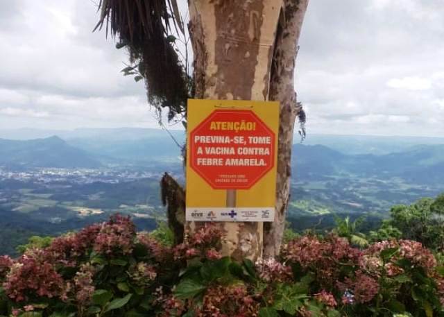 Placas que alertam para vacinação contra a febre amarela estão sendo instaladas em Timbó