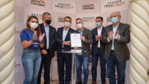 Os prefeitos foram recebidos pelo governador Carlos Moisés na Casa d’Agronômica, em Florianópolis, para a solenidade de adesão. Segundo o chefe do Executivo estadual, o Plano 1000 representa a maior iniciativa municipalista da história de Santa Catarina, com investimento de R$ 7,3 bilhões até 2026. Nesta segunda-feira, firmaram compromisso cidades das regiões Norte, Sul, Vale do Itajaí, Grande Florianópolis, Meio-Oeste, Oeste e Extremo Oeste.