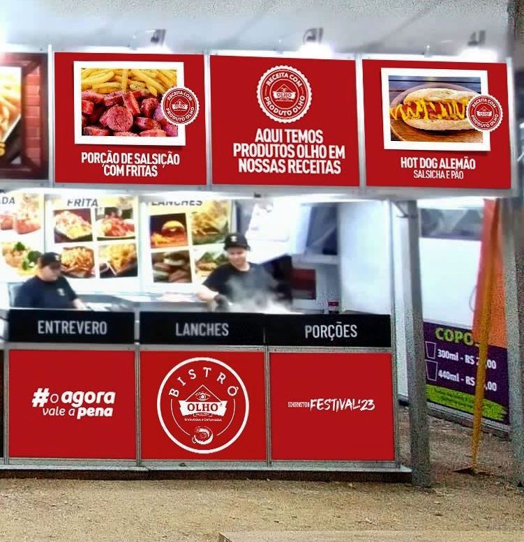 A Olho Embutidos e Defumados está presente no Schornstein Festival´23 nesse final de semana, dias 01 e 02 de julho, em Pomerode, pela primeira vez com pratos da culinária germânica. Como patrocinador, a Olho já participou de outras edições do festival. Porém, dentro da meta de estar mais presente em eventos demonstrando a versatilidade dos seus produtos, a empresa firmou essa parceria com o Empório da Batata. O próximo evento será o Festival Gastronômico de Pomerode.
