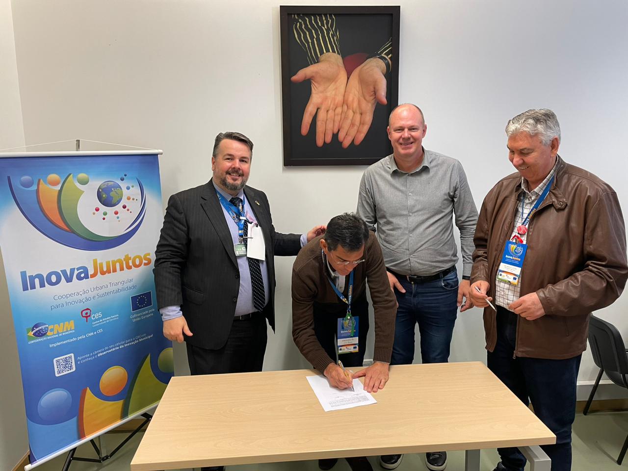 Cinco acordos de cooperação internacional assinados, visitas técnicas, troca de experiências e parcerias futuras. Estes são alguns dos resultados da missão internacional que participam o presidente do Consórcio Intermunicipal de Saúde do Médio Vale do Itajaí (Cisamvi), Ércio Kriek, prefeito de Pomerode, a diretora executiva da entidade, Vanessa Fernanda Schmitt e o presidente da Associação de Municípios do Vale Europeu (Amve), Arão Josino, prefeito de Ascurra. Eles fazem parte de um grupo de gestores públicos brasileiros e portugueses que participam, nesta semana, do programa InovaJuntos, em Portugal.