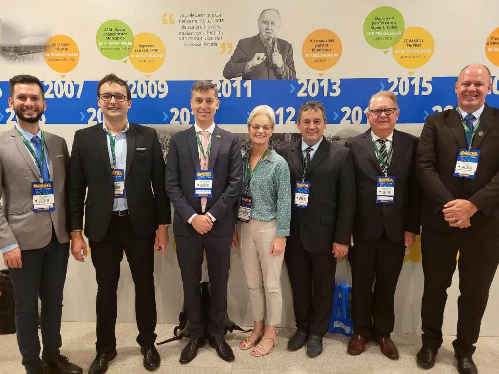 Liderados pelo presidente da Associação de Municípios do Vale Europeu (Amve), Arão Josino, prefeitos, vice-prefeitos, vereadores e secretários municipais da região estão na capital federal, nesta semana, participando da XXIII Marcha a Brasília em Defesa dos Municípios, junto com outros milhares de municipalistas. O evento iniciou no dia 25 de abril e segue até quinta-feira (28).