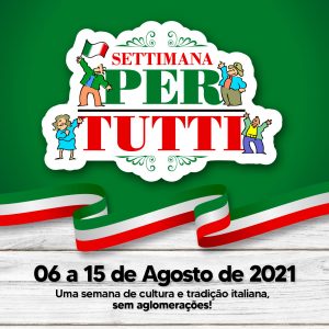 A ‘Settimana Per Tutti’ vem para não deixar a cultura italiana sem um momento no município, mesmo em um ano onde não teremos a nossa festa. A programação terá Concurso de Decoração, Circuito Culinário, Concurso Gastronômico, Festival da Canção Italiana, Corrida Rústica, Feira de Rua, lives e muito mais!