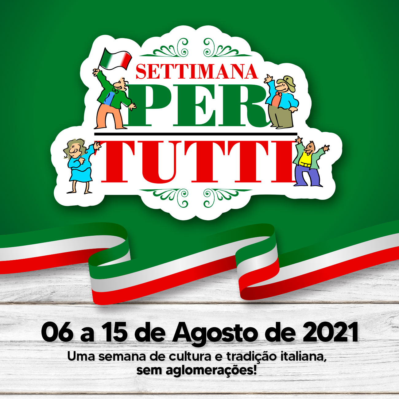A ‘Settimana Per Tutti’ vem para não deixar a cultura italiana sem um momento no município, mesmo em um ano onde não teremos a nossa festa. A programação terá Concurso de Decoração, Circuito Culinário, Concurso Gastronômico, Festival da Canção Italiana, Corrida Rústica, Feira de Rua, lives e muito mais!