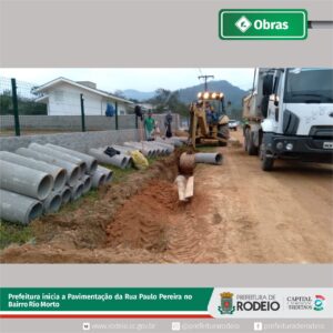 A Prefeitura de Rodeio através de sua Diretoria de Obras iniciou a pavimentação da Rua Paulo Pereira no Bairro Rio Morto com a instalação da drenagem pluvial. Mais uma obra contemplada pelo programa Acelera Rodeio.