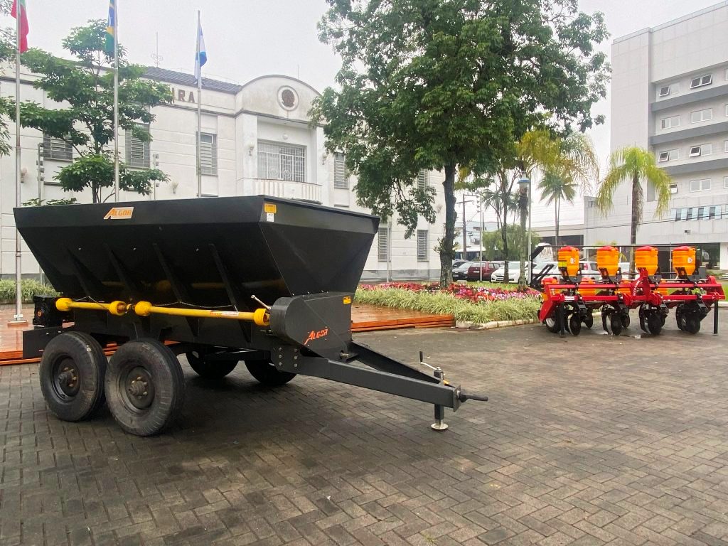 Chegaram nesta semana uma plantadeira com quatro linhas, no valor de R$ 45.785,00 e um distribuidor de calcário e fertilizantes, no valor de R$ 50.250,00. Estão previstos para serem entregues já na próxima semana uma grade aradora, um arado a disco, uma roçadeira, um microtrator tobata e um canteirador.