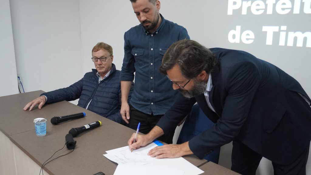 Na manhã desta terça-feira, dia 17 de outubro, foi assinado o termo de cooperação para elaboração de projeto para Concessão do Saneamento Básico do Município. Participaram da assinatura o prefeito de Timbó, Jorge Krüger, o diretor-presidente do SAMAE Timbó, Waldir Girardi, e o Diretor de Mercado Civil e Parcerias da Fundação Ezute, Thomas Strasser.