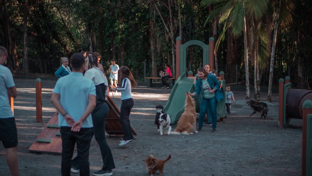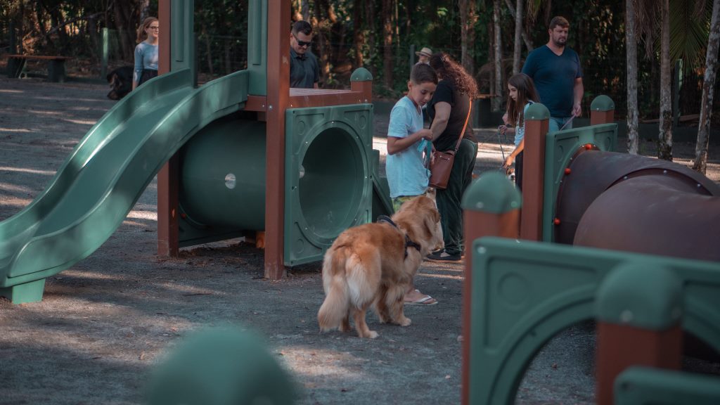 O Parcão é um espaço amplo, cercado e conta com parquinho pet, além de bancos para os tutores. É um local onde os animais podem correr, explorar os brinquedos e gastar energia de maneira segura e controlada.