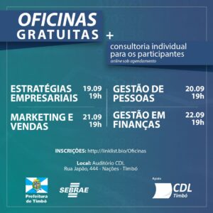 Para dar início ao Capacita Timbó, será realizada uma semana inteira de oficinas gratuitas, focadas na capacitação de equipes das empresas, com o suporte técnico do Programa Cidade Empreendedora do SEBRAE-SC.