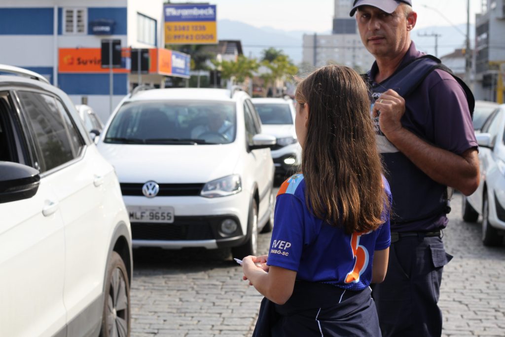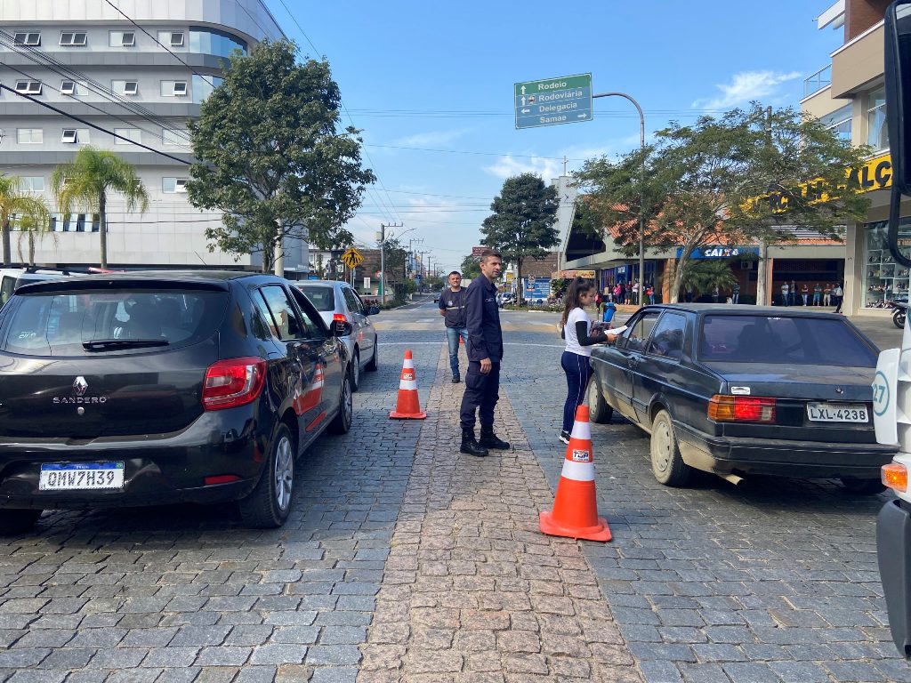 A distribuição do material foi feita por estudantes da Escola Municipal Erwin Prade, com o acompanhamento do Departamento Municipal de Trânsito (Demutran). Neste sábado, dia 28, haverá mais uma blitz educativa.