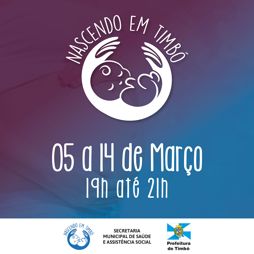 Aos papais e mamães, nos dias 05, 07, 12 e 14 de março acontece mais uma edição do projeto Nascendo em Timbó, promovido pela Prefeitura de Timbó, através Secretaria Municipal de Saúde e Assistência Social.