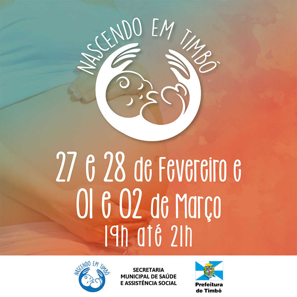 Aos papais e mamães, entre os dias 27 de fevereiro e 02 de março acontece mais uma edição do projeto Nascendo em Timbó, promovido pela Prefeitura de Timbó, através Secretaria Municipal de Saúde e Assistência Social.