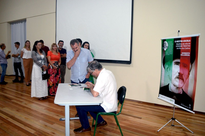 A abertura foi feita pelo professor da escola Sergi Mengarda, responsável pela apresentação do livro. Ele disse que se sentiu emocionado por fazer parte do livro, apresentando a obra que se propõe em relatar o percurso do italiano Giovanni Trentini desde sua vinda para o Brasil até a sua morte. “ O autor, que nasceu e viveu na mesma região que Giovanni Trentini, usa com sabedoria as referências e fontes para contar a história desse imigrante italiano. Revela o cotidiano, necessidades e ansiedade das pessoas. Não é só uma biografia, mas a produção de uma obra que tem como cenário a ocupação do Médio Vale do Itajaí, a partir da metade do século 19 e Rio dos Cedros a partir de 1875”.