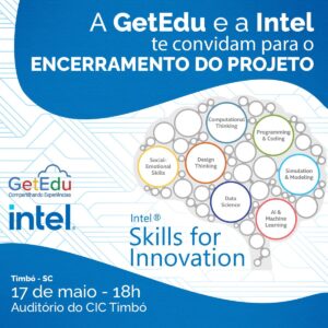 Nesta quarta-feira, dia 17 de maio, será realizada a formatura dos 25 professores da Rede Municipal de Educação que participaram do curso “Intel Skills for Innovation”. Por ser um polo inovador em Educação, Timbó foi um dos dois municípios brasileiros selecionados pela Get Edu para receber o curso, ministrado pela primeira vez no país.