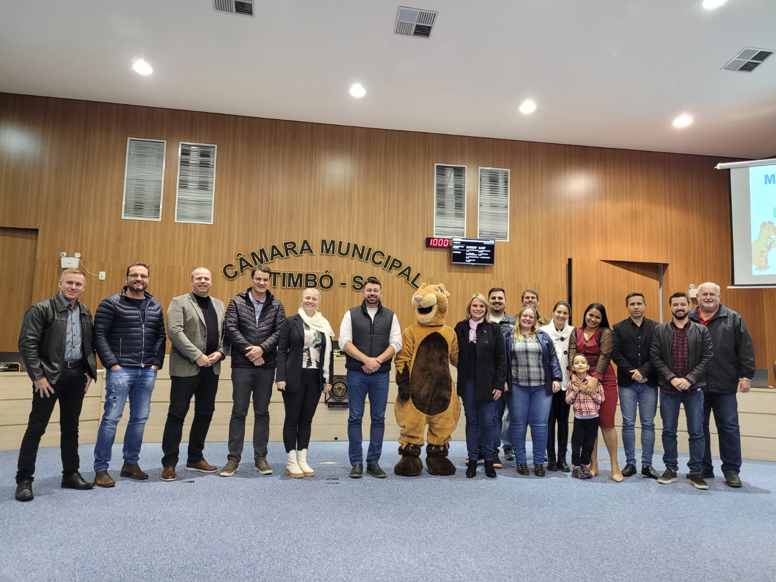 A Câmara de Vereadores de Timbó realizou nesta terça-feira (14) a 20ª Sessão Ordinária de 2022, que contou com os representantes do Programa Municipal de Educação Ambiental (PROMEA), Professora Carla Groni, o Diretor do Departamento de Meio Ambiente, Ricardo Longo Orsi, o Engenheiro Florestal, Ricardo Murilo Malheiros dos Santos, e o Técnico em Saneamento Rodrigo Catafesta Francisco.