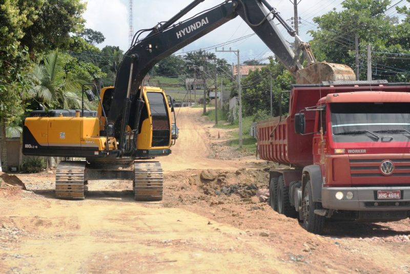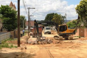 A Rua Petúnia, Bairro Padre Martinho Stein, está em fase final com a colocação dos paralelepípedos. Nas ruas Paraíba e Angico, Bairro dos Estados, a Secretaria de Obras está realizando a drenagem e começando a preparação da cancha para a empreiteira executar a pavimentação asfáltica.
