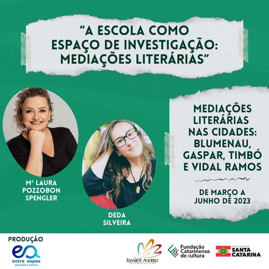 O projeto “A Escola Como Espaço De Investigação: Mediações Literárias”, da proponente Maria Laura Pozzobon Spengler, é contemplado pelo Prêmio Elisabete Anderle de Apoio à Cultura, e executado com recursos do Governo do Estado de Santa Catarina, por meio da Fundação Catarinense da Cultura. Edital 28/2022, inscrição nº 000782. Acompanhe o projeto pelo canal www.youtube.com/@entreaspaseducacaoecultura