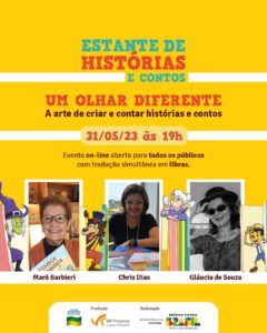 Evento gratuito acontece dia 31 de maio, às 19h, no canal do YouTube do Estante de Histórias, com as autoras e contadoras de histórias Marô Barbieri, Gláucia de Souza e Christina Dias