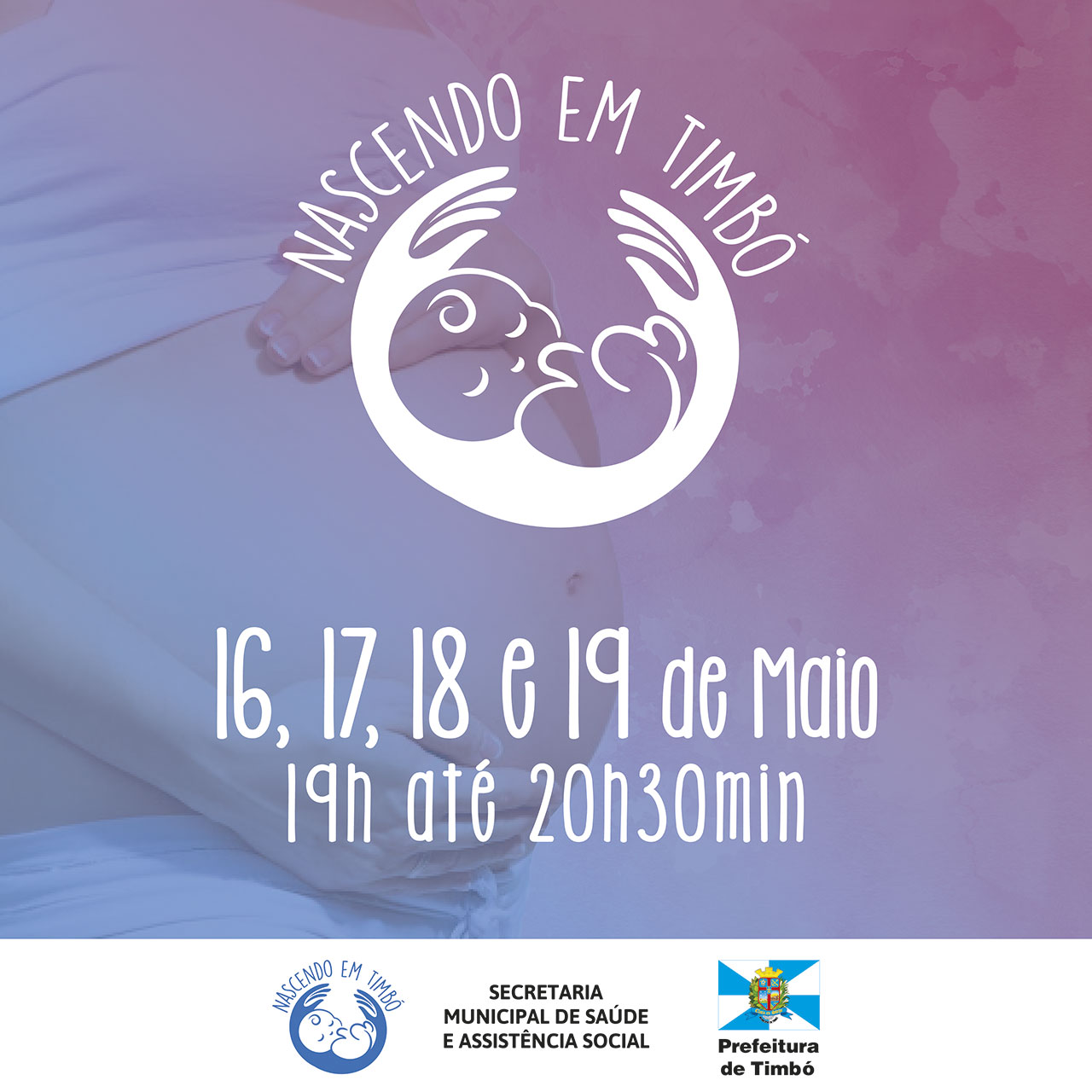 Aos papais e mamães, entre os dias 16 e 19 de maio acontece mais uma edição do projeto Nascendo em Timbó, promovido pela Prefeitura de Timbó, através Secretaria Municipal de Saúde e Assistência Social.