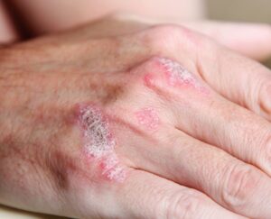A Psoríase é uma doença inflamatória, sistêmica, crônica e autoimune, que causa placas avermelhadas espessas na pele, cobertas por escamas esbranquiçadas ou prateadas. Essas lesões podem apresentar coceira, dor, queimação e descamação. Inchaços e rigidez nas articulações podem ocorrer. A doença não é contagiosa e afeta muito a qualidade de vida dos pacientes, indo muito além da questão estética da pele.