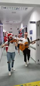 Sob a condução da professora de música Patrícia Alzira da Veiga, ao violão, e da professora de música e musicoterapeuta Adriana Paulina da Veiga, ao violino, cada apresentação transformou-se em um gesto de carinho e acolhimento. As canções natalinas criaram um ambiente de serenidade, despertaram sorrisos e emocionaram pacientes, acompanhantes e profissionais de saúde.