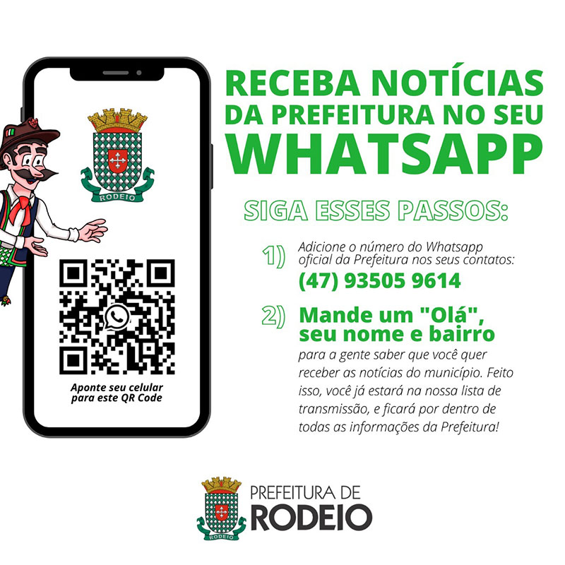 RECEBEBA NOTÍCIAS DA PREFEIURA DE RODEIO NO SEU WHATSAPP